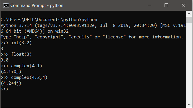 Để chuyển đổi qua lại các kiểu dữ liệu, dùng các lệnh int, float, complex. Xem ví dụ dưới đây để rõ hơn.
