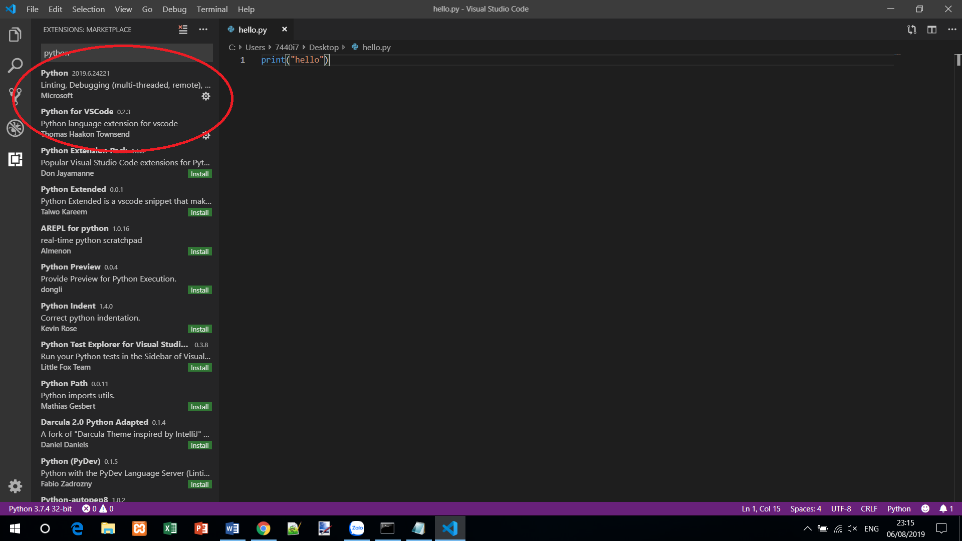 Đánh chữ python và cài 2 extension là python và python for VSCode