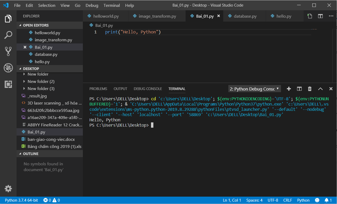 Mở visual studio -> File -> New File -> Save với tên bai_01.py.